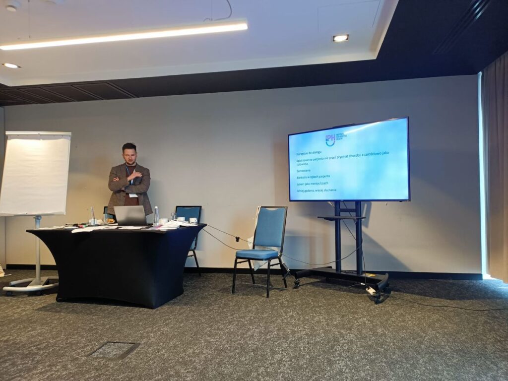 Po obiedzie przeszliśmy przez zestaw wykładów, które dotyczyły wszystkiego, co na co dzień „przychodzi do gabinetu”. Wykład o IBS, który idealnie zgrał się z podanym w ramach deseru jubileuszowym torcikiem. Prezes Łukasz Reczek zapewniał, że nie było to zamierzone — ale cóż, koincydencja level expert. Później cenne wskazówki nt badania neurologicznego. Następnie ciekawy i potrzebny wykład Dominika Lewandowskiego nt pacjenta geriatrycznego, czyli rozsądne i wyważone spojrzenie na tę szczególną populację pacjentów. Tę sesję zamknął wykład Katarzyny Nessler na temat przyszłości i rozwoju technologii, czyli o możliwości korzystania z MEDIBAS w gabinecie POZ.